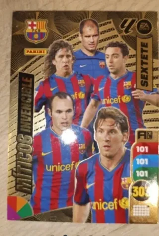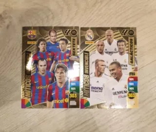 Colección de dos cromos de fútbol de la colección Adrenalyn Panini Míticos Invencibles. Laliga ea. - Cromo Sextete del FC Barcelona. - Cromo Galácticos del Real Madrid. 1 cromo: 15€ Pack 2 cromos: 25€