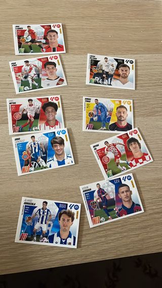 Cromos repetidos de jugadores de La Liga Este de Panini - Cromos de las temporadas 2020/21. 2021/22. 2022/23. - Incluye detalles de los jugadores como año de nacimiento, altura y peso. Precio a negociar dependiendo de cuantos cromos quieras.