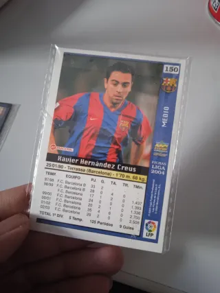 Cromo Xavi mundicromo liga 2004 en perfecto estado está guardado en plástico transparente para proteger