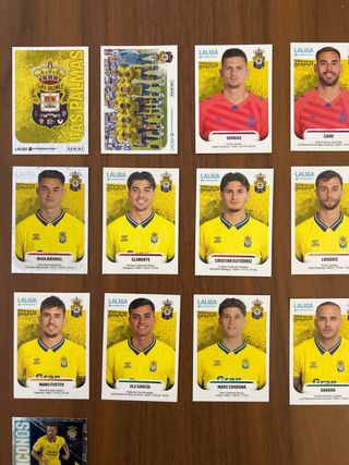 Colección de 13 cromos de la temporada 2024-25 de LaLiga. - Incluye cromos de jugadores y escudos. - Cromos de la marca Panini.