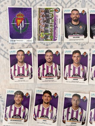 Colección de cromos de LaLiga del Real Valladolid. - Incluye varios jugadores del equipo. - Cromos de la temporada. - Perfectos para coleccionistas.