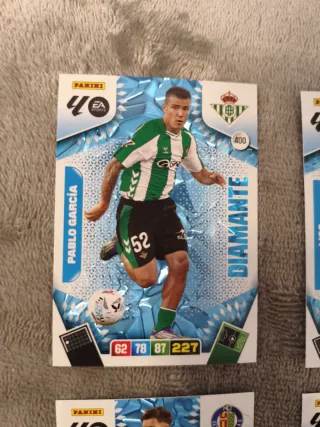 Colección de 5 cromos de fútbol Panini Adrenalyn XL de la colección DIAMANTE. Precio: 1€/cromo. 4€ los cinco cromos. - Cromos de jugadores: Pablo García, Liso, Davinchi, Joel Roca, Mateo Joseph. 📍Entrega en mano en Rivas-Vaciamadrid o en Plaza Quintana (los domingos por la mañana). 📦 Envío disponible. Si tienes cualquier duda, escríbeme por el chat 😉.