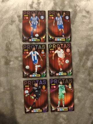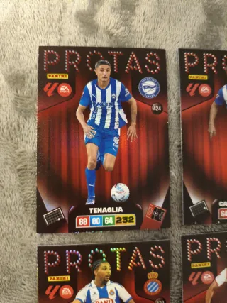 Colección de 5 cromos de fútbol Panini Adrenalyn XL de la colección PROTAS. Precio: 1€/cromo. 5€ los seis cromos. 📍Entrega en mano en Rivas-Vaciamadrid o en Plaza Quintana (los domingos por la mañana). 📦 Envío disponible. Si tienes cualquier duda, escríbeme por el chat 😉.