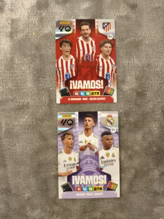 Colección de 2 cromos de fútbol Panini Adrenalyn XL de la colección ¡VAMOS! Precio: 2,5€/cromo. 4€ los dos cromos. 📍Entrega en mano en Rivas-Vaciamadrid o en Plaza Quintana (los domingos por la mañana). 📦 Envío disponible. Si tienes cualquier duda, escríbeme por el chat 😉.