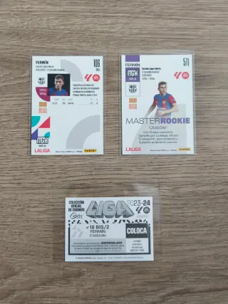 Lote de 3 cromos de Fermín López de LaLiga. - Incluye 2 cromos de la temporada 2023-24. - Un cromo es de la colección Master Rookie. - Se envían todos con fundas. Hago envío ordinario y rápido 📦🚚