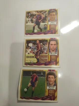 Lote de cromos de jugadores del FC Barcelona de la temporada 1995, firmados. - Incluye cromos de Sergi, I. De la Peña y Popescu. - Firmas originales de los jugadores.