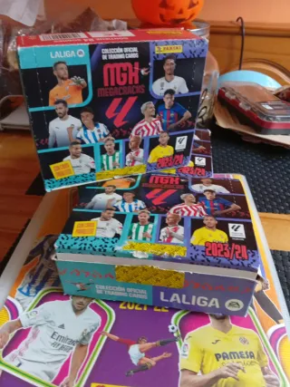 Cajas de cromos sueltos de LaLiga Megacracks de la temporada 2023/2024. Contiene 24 sobres cada una. - Colección oficial de trading cards. - Incluye cards con paralelos. Se venden o cambio por las que me falten.