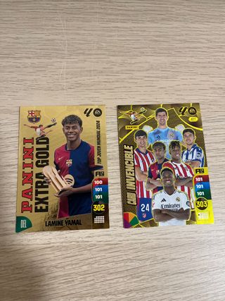 Colección de cromos de fútbol Panini. - Lamine Yamal Extra Gold. - Card Invencible. - Incluye los cromos con los números 302 y 303.