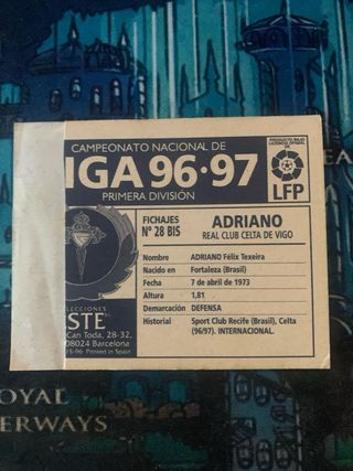 Adriano Fichaje 28 Bis Liga Este 96-97 ventanilla