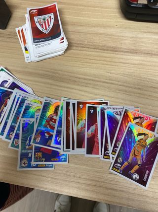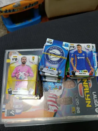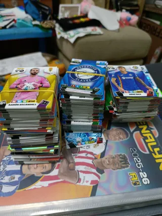 Completo pack de coleccionismo de La Liga. **SE ESCUCHAN OFERTAS** - Incluye varios álbumes. - Contiene múltiples colecciones de cromos y cartas. - Diversos sobres y figuras. - Artículos de las temporadas 2023-24, 2024-25 y 2025-26.