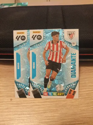 Pack de 2 cromos de la colección Adrenalyn XL 2025/2026. - Incluye el cromo de Rego x2 en su versión Diamante. - Cada cromo tiene las estadísticas: 66, 76, 85, 227.