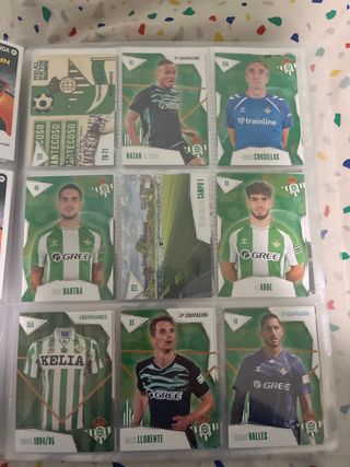 Colección de cromos del Real Betis Balompié. - Incluye cromos de jugadores y equipaciones. - Cromos de Natan, Abde, Bartra, Llorente y Valles. -cartas separadas tambien -precio negociable