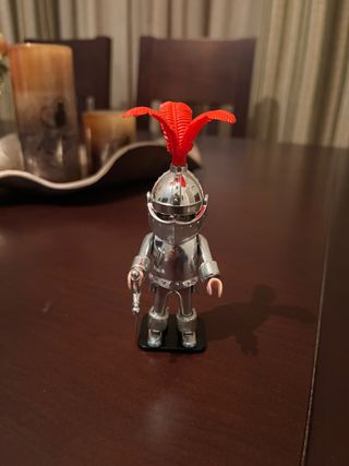 Figura de Playmobil de un caballero medieval con armadura cromada. PRECIO NO NEGOCIABLE - Referencia: 3449. - Diseño de armadura plateada. - Detalle de plumas rojas en el casco. Se hace envio x wallapop solo a traves de correos.