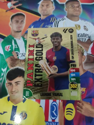Cromo de Panini Extra Gold de Lamine Yamal. - Edición: Top Joven Mundial 2024. - Serie: 40. - Puntos: 302. Negociable