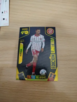Colección de cromos Panini Adrenalyn XL. - Cromos de jugadores de fútbol. - Incluye jugadores como Germán Valera, Kike García, Stuani, Darder, Moldovan y Mikautadze. - Cada cromo tiene estadísticas y un número de identificación.