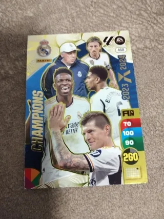 Colección de cromos de la Champions League de la temporada 2023-2024. - Incluye varios jugadores del Real Madrid. - Cromos de la marca Panini. - Edición de EA Sports.