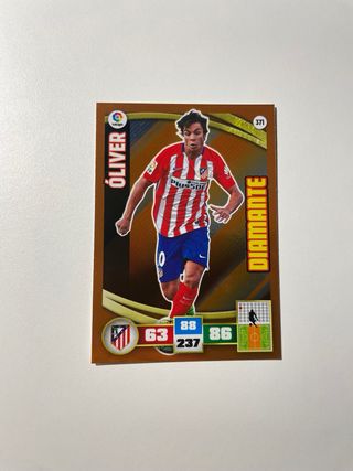 Colección de cromos del Atlético de Madrid de diferentes años. Incluye jugadores icónicos. - Cromo de Gabi. - Cromo de Oliver Torres. - Cromo de Antoine Griezmann. - Cromo de Álvaro Morata. - Cromos ICONOS y DIAMANTE.