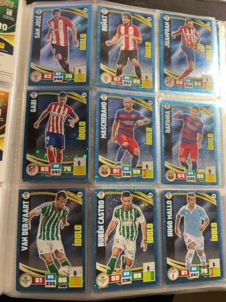 Colección de cromos Adrenalyn de la temporada 2015-2016. En perfectas condiciones Idolos de la coleccion 2015-2016 de Adrenalyn en perfecto estado. Valen 2€ cada uno y cada 10 que coges te sale a 1,5€ cada uno. - Jugadores como Van Der Vaart, Gabi, Mascherano, Raphinha, San José, Beñat, Juanfran, Rubén Castro y Hugo Mallo.