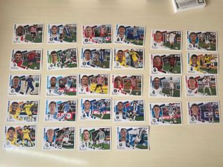 Vendo mis 18 cromos repetidos de la temporada 2015/16. Pregunta sin compromiso. También tengo el album en mi perfil con varios cromos pegados, incluido Messi, en perfecto estado.