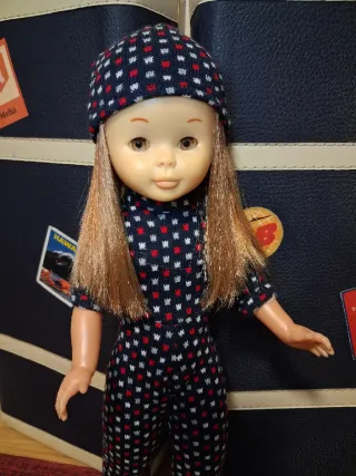 Nancy de la época transición, finales de los años 70, creo que del 79 . Ojos margarita azules y pelo rubio. Las articulaciones están bien , no hay fisuras ni roturas, algunas marcas del paso de los años, un roce en el tobillo, los talones de poner y sacar zapatos y un pinchazo en la espalda por abajo, ver fotos. Se envía con el conjunto buenas noches de las fotos, ropa interior y salto de cama. NO ENVÍO POR CORREOS SOLO INPOST, SEUR O GLS. No envío fuera de la app. Nancy, famosa, antigua, años 70, ojos margarita, colección, rubia , conjunto, transición.