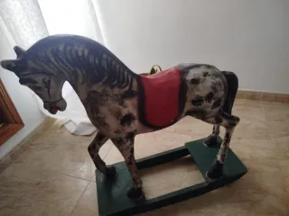 Conjunto de dos caballos balancín antiguos. Piezas decorativas con un diseño clásico. - Estructura de caballo. - Base balancín. Medidas cabeza suelo 72cm Ancho 19cm