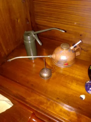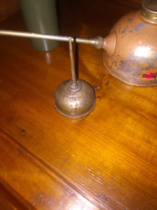 Conjunto de dos aceiteras vintage de las llamadas industriales y una de maquina de coser.