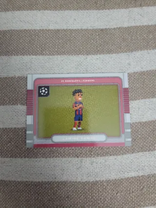 Tarjeta de colección de Lamine Yamal de la colección Topps UCL Team of the Season. - Tarjeta de jugador de fútbol. - Edición Team of the Season. - Incluye el escudo del FC Barcelona.