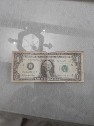 Billete de un dólar estadounidense de 2001. - Serie E60465013F. - Emitido por el Federal Reserve Note.