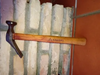 Martillo antiguo con mango de madera y marca Bellota. - Mango de madera. - Marca Bellota grabada.