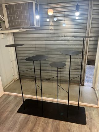 Expositor metálico artesanal, hecho en Ibiza por un herrero local. Diseño minimalista y muy ligero visualmente. Ideal para escaparates, boutiques, salones de belleza, concept stores, estudios creativos o decoración. ✔️ Pieza única ✔️ Estructura estable ✔️ Acabado en negro mate ✔️ Varias alturas para crear composiciones ✔️ Perfecto para productos, plantas, decoración o merchandising 📦 Disponibilidad: Se puede reservar ahora. Entrega a partir del 31 de diciembre. 📍Recogida en Ibiza centro.