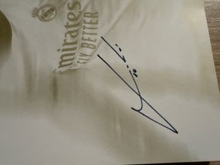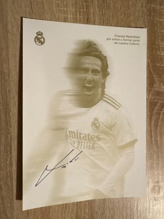 Autógrafo original de Luka Modrić, jugador del Real Madrid. - Firma en tinta azul. - Incluye escudo del Real Madrid. - Texto Gracias Madridista por entrar a formar parte de nuestra historia.