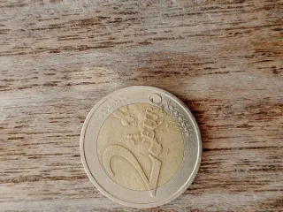 Conjunto de dos monedas de 2 euros para coleccionistas. Cada moneda presenta un diseño distintivo. - Moneda con diseño de doble cruz. - Moneda con diseño floral. Slovenscko y Portugal