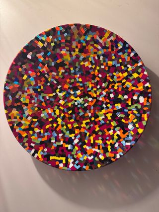 Precioso plato de cristal Murano con diseño de mosaico VeVé. Una pieza de arte firmada por Birello. - Diseño de mosaico vibrante. - Cristal Murano auténtico. - Firma del artista Birello. Plato decorativo Murano “Mosaico” de VeVé Glass, firmado por el artista Birello. Pieza de primera edición del año 2017, perteneciente a la colección Aquilone. Las versiones actuales siguen a la venta, pero ya no llevan firma del artista, por lo que este ejemplar firmado es una pieza única y de alto valor para coleccionistas. Vidrio artístico Murano hecho a mano, diámetro aproximado 40 cm. Estado perfecto. Confirmación de autenticidad disponible.
