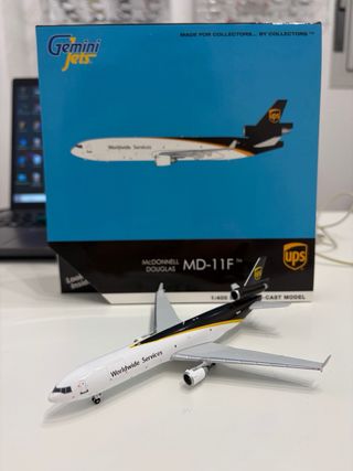Réplica a escala 1:400 del avión McDonnell Douglas MD-11F de UPS. - Perfecto estado. - Diseño detallado de la librea de UPS. - Fabricante GeminiJets.
