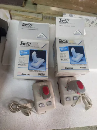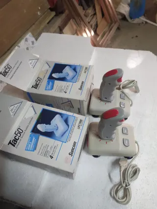 Se venden dos joysticks Suncom Tac50, diseñados para consolas Atari y Commodore. Son controladores tácticos mejorados. - Modelo: Tac50 - Marca: Suncom - Compatibilidad: Atari & Commodore - Botones: 4 botones de disparo - Diseño: Estilo aeronáutico Producto difícil de conseguir NUEVOS A ESTRENAR PRECIO POR LOS DOS.