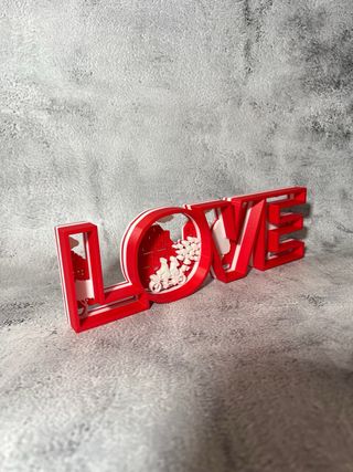 Un LOVE diferente, de los que se miran despacio. Esta pieza decorativa muestra la palabra LOVE completa, con una escena romántica integrada dentro de las letras, creando un efecto precioso y muy especial. No es solo una palabra: es una pequeña historia de amor contada en forma de decoración. Cada letra tiene vida propia y, al verlo de frente, descubres los detalles del interior, lo que lo convierte en un regalo original y con mucho encanto. Es perfecto para colocar en una estantería, un mueble o un rincón especial de la casa. Está impreso en 3D bajo demanda, no es un producto en serie. Se fabrica especialmente para cada pedido