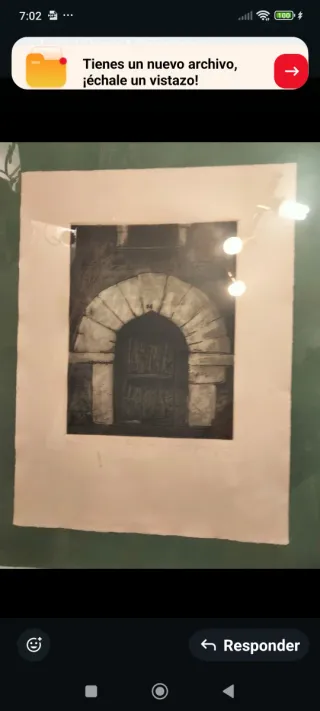 Grabado original de la artista Teresa Grasa Jordá. La obra muestra una entrada con arco de piedra y puerta de madera. - Firmado a mano por la artista. - Edición limitada.