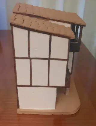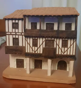Réplica de una casa tradicional de La Alberca, ideal para coleccionistas o amantes de la arquitectura. - Fachada con entramado. - Tejado de tejas - Balcones. - Puertas y ventanas detalladas. Todo de cerámica. 17 cm de ancho x 17 de alto