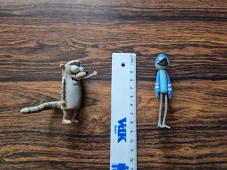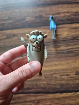 Figuras de los personajes de Regular Show o Historias corrientes. Mordecai y Rigby. Se le pueden mover las manos y a Rogby también la cola. Tienen una pestaña para abrir y cerrar la boca. No se mantienen bien de pie. - Personajes de la serie animada. - Ideal para coleccionistas.