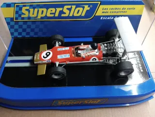 Coche de slot Superslot del equipo Lotus Ford, pilotado por J. Oliver. - Réplica detallada del coche de competición. - Diseño clásico de los años 70. - Escala 1:32. - Compatible con pistas Scalextric, Ninco, Superslot, Carrera, etc.