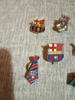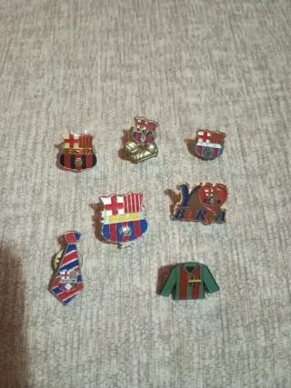 Lote de 7 pines del FC Barcelona. - Incluye varios diseños del escudo del club. - Un pin con forma de corbata. - Un pin con forma de camiseta.