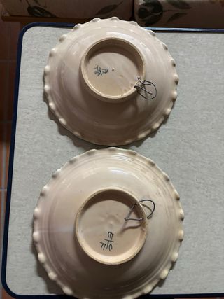 Conjunto de dos platos de cerámica con un diseño floral pintado a mano. - Diseño floral colorido. - Borde ondulado con detalles. - Acabado brillante.