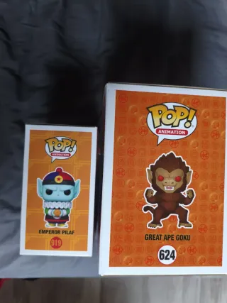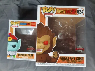 Dos figuras Funko Pop de la serie Dragon Ball Z. - Funko Pop! Animation Dragon Ball Z 919 Emperor Pilaf. - Funko Pop! Animation Dragon Ball Z 624 Great Ape Goku. - Ambas figuras son Special Edition.