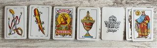 Cartas Fournier del Barça (Naipes Españoles)<br>Me faltan 2 cartas de espadas el 5 y 6 y me sobran 2 cartas 11y12 de Oros.