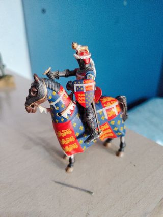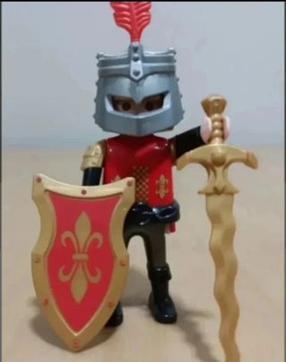 Caballero medieval Playmobil, en perfecto estado. - Incluye escudo y espada. - Casco y pluma incluidos. - Figura articulada. Opción de agrupar anuncios y de realizar envíos ordinarios por Correos