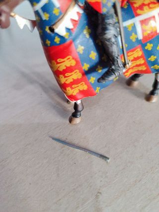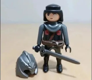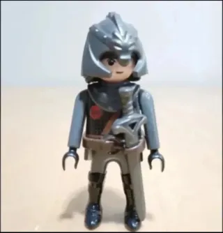Figura de Playmobil de un caballero medieval, listo para la aventura. - Casco gris con diseño. - Armadura detallada en torso y piernas. - Espada plateada. - Cinturón marrón. Opción de agrupar anuncios y de realizar envíos ordinarios por Correos