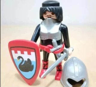 Caballero medieval Playmobil, en buen estado. - Incluye escudo con cisne negro. - Espada y yelmo incluidos. - Figura articulada. Opción de agrupar anuncios y de realizar envíos ordinarios por Correos