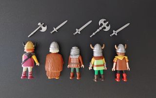Playmobil 5 figuras de vikingos. Son figuras en buen estado, listas para jugar. Incluye cinco figuras de vikingos con sus armaduras, hachas, espadas y cascos. Bien conservados. Todo el lote 10 €
