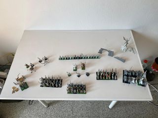 En venta, ejército de Altos Elfos para Warhammer. - 1 Carro de combate - 21 Lanceros - 16 Arqueros - 21 Maestros de la Espada - 21 Leones Blancos - 10 Yelmos Plateados - 2 Lanzavirotes - 2 Magos a pié - 1 Mago a caballo - 2 Generales, a pié y a caballo
