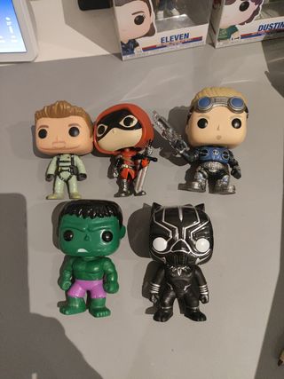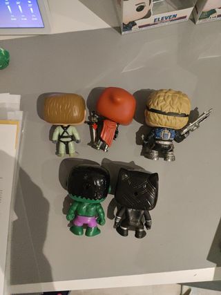 Colección de figuras Funko Pop de personajes de Marvel. - Figura de Hulk. - Figura de Black Panther. - Figura de Hawkeye - Figura de personaje con traje rojo y espada. - Figura de Star lord Cada uno a 5€ están sin usar pero sin caja